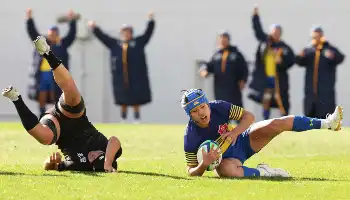 先発を外れながら、序盤の交代でアタックに加わった背番号25のWTB斉藤稀茶(2年)が前半9分にゴール前ラックからのロングパスを受け、先制トライに成功。斉藤はこれが3試合連続、5個目のトライ。花園でポイントゲッターとしての成長を見せつけた。