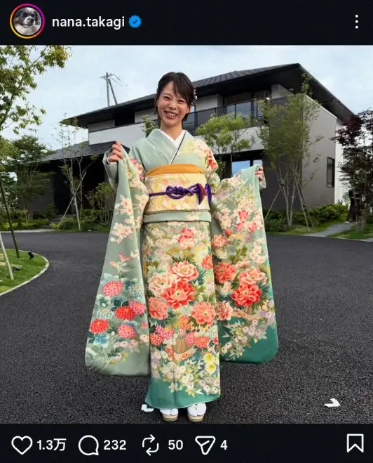 2018年平昌冬季五輪でスピードスケート女子団体パシュート、女子マススタートと2個の金メダルを獲得した高木菜那さん(33)が4日までに自身のインスタグラムを更新。浅葱色(あさぎいろ)の生地に鮮やかな花柄の入った振り袖姿を披露した。