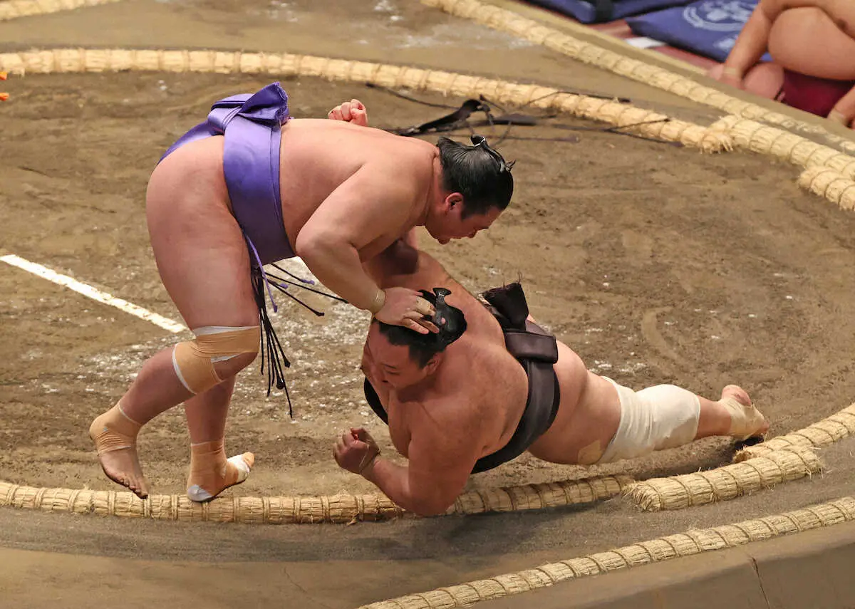 新大関の安青錦は首投げ、かばい手で義ノ富士から辛くも白星 2日目も上位陣は安泰
