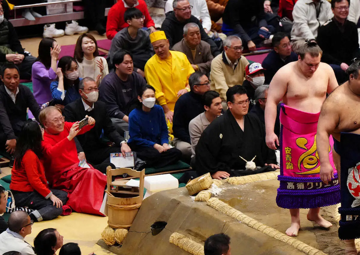 九州場所優勝力士として臨む今場所は06年夏場所の白鵬以来となる新大関Vが懸かる。そんな安青錦を土俵下で見守ったのが、好角家としても知られる美容外科医で「高須クリニック」院長の高須克弥氏(80)だった。これまでも何度も中継に映り、相撲ファンにはおなじみの一幕。
