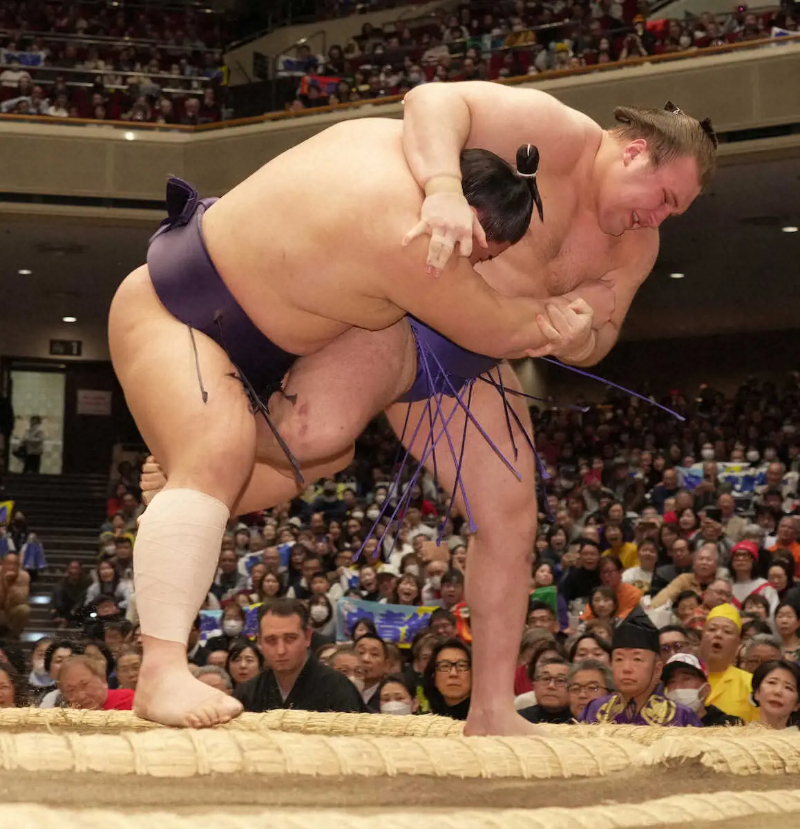 辛勝の新大関は「もう一丁かなと思った。内容は良くなかったが勝てて良かった」と安堵(あんど)の表情。粂川審判長(元小結・琴稲妻)は「執念。足腰がいいから残せている」と評価した。