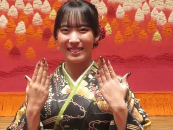 女子ゴルフで米ツアー2年目を迎える馬場咲希(20=サントリー)が12日、出身地の東京都日野市で行われた「二十歳のつどい」に参加した。黒と金のあでやかな晴れ着姿で出席者を代表してスピーチも披露。家族や周囲への感謝、失敗や成功を重ねながらも挑戦を続けるゴルフと人生を重ねた誓いを巻物にしたためてきた。