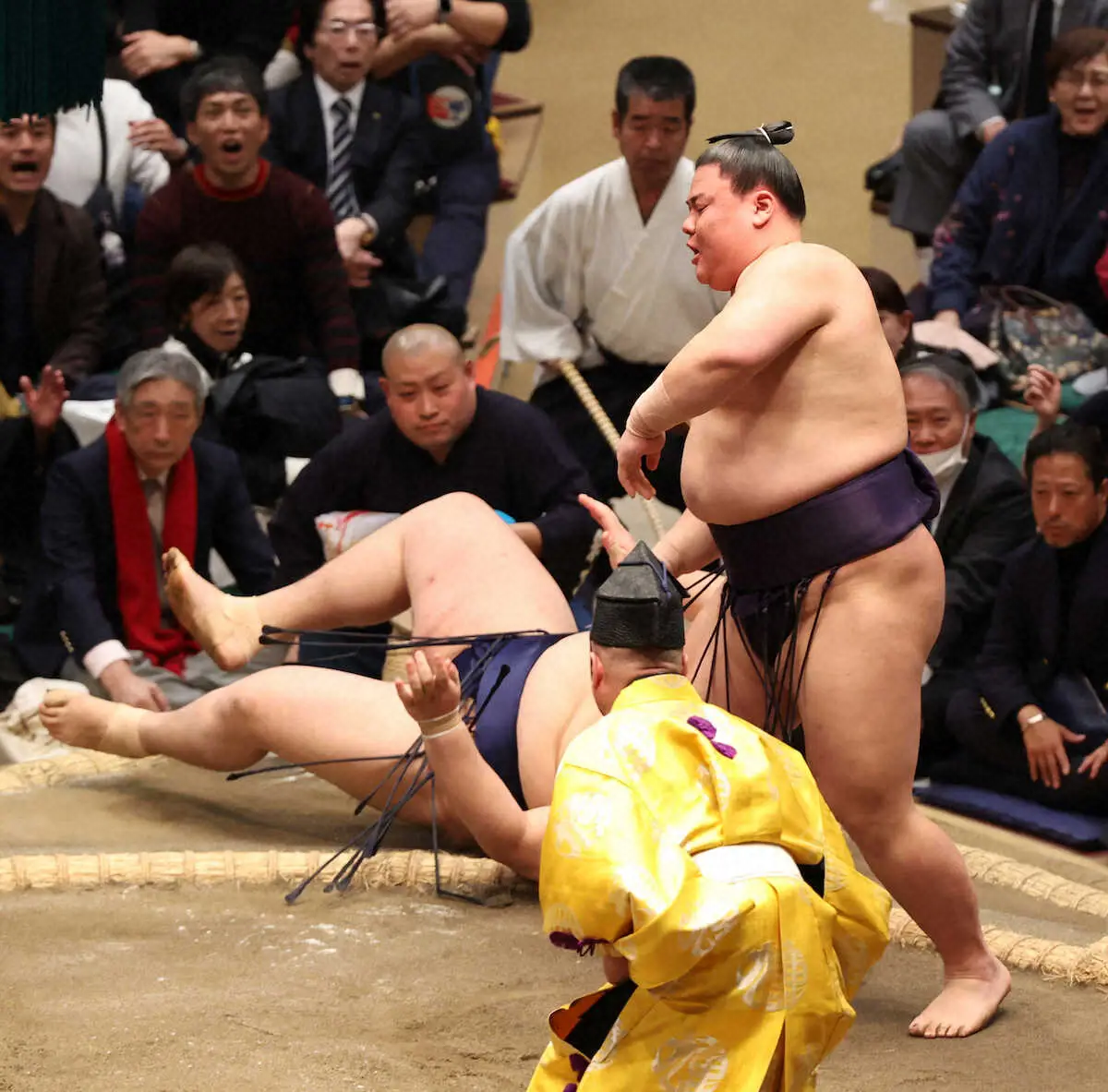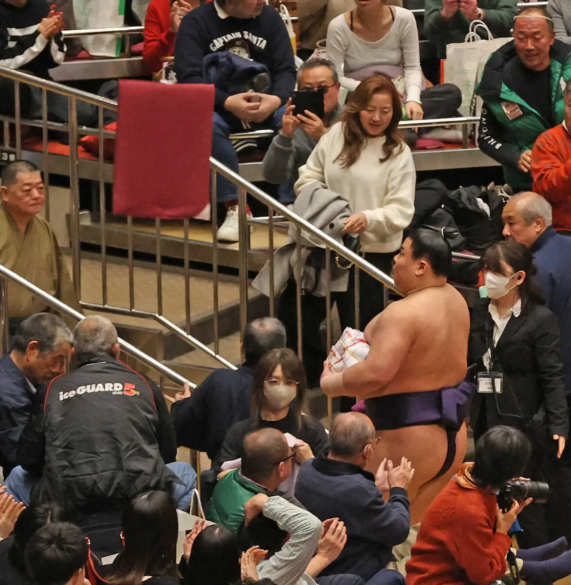 <大相撲初場所4日目>座布団が舞う中、懸賞を手に引き揚げる義ノ富士(左)(撮影・西海健太郎) Photo by スポニチ 「束がハンパない」「広辞苑みたいやな」連日金星!義ノ富士の「懸賞金い… ギャラリーで見る この記事のフォト 2026年01月14日の画像一覧 もっと見る 2026年01月14日の画像をもっと見る