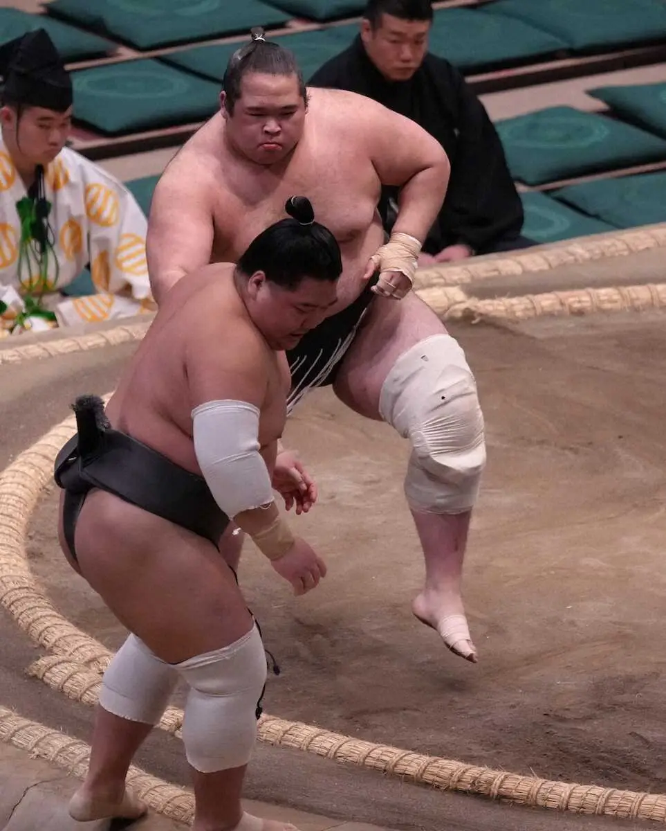 「受けちゃった。相手が強かった」と立ち合いから攻められたが、ひるまず突いて力強く突き出した。無傷の4連勝で勝ち越し。「忘れていた。全然意識していない」と集中していた。