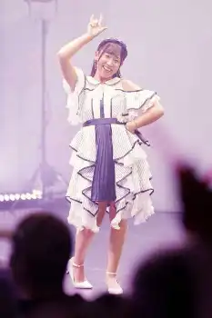 白いドレス姿でステージに登場した菅沼はいきなり「フライングゲット」、「ヘビーローテーション」、「会いたかった」とAKB48のナンバーを立て続けに熱唱した。
