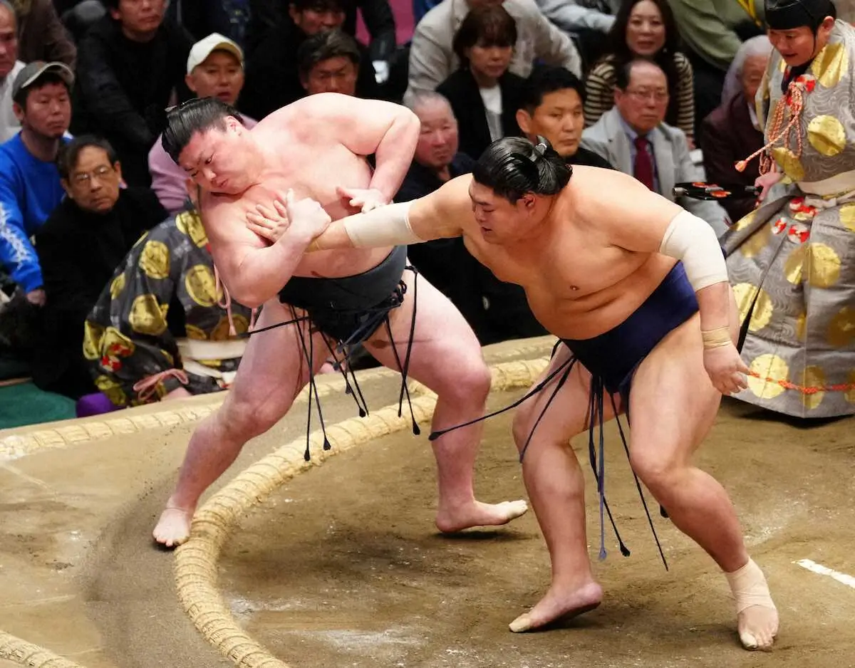<大相撲初場所8日目>伯乃富士(左)に押し出しで敗れた大の里(撮影・島崎忠彦) Photo by スポニチ 6年ぶり「天覧相撲」 2横綱、2大関が全員敗れる大波乱 霧島と阿炎が1敗… ギャラリーで見る この記事のフォト 2026年01月18日の画像一覧 もっと見る 2026年01月18日の画像をもっと見る