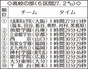 駅伝高校の部 Photo by スポニチ 【女子駅伝】高校の部は大阪薫英女学院が8年ぶりの優勝 3選手が区間1位の… ギャラリーで見る この記事のフォト 2026年01月19日の画像一覧 もっと見る 2026年01月19日の画像をもっと見る