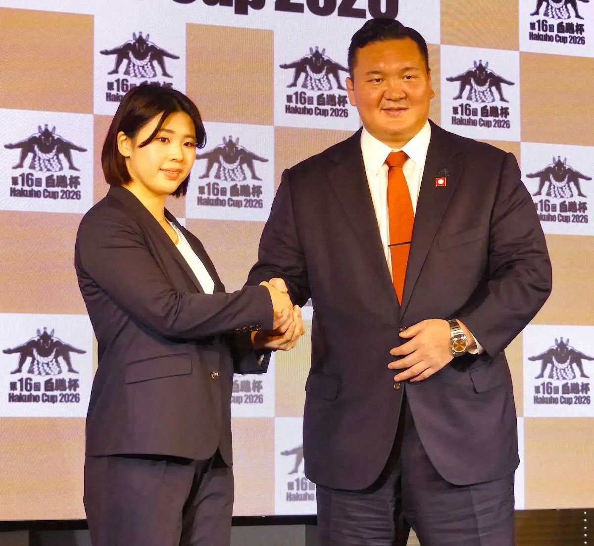 また、長谷川は昨年11月に地元の青森で県褒賞を受賞。相撲関係者では鏡里や初代若乃花ら名横綱が受賞してきた名誉ある賞で、2024年春場所で新入幕優勝を果たした尊富士まで過去9人の力士が受賞してきた。この日、長谷川の青森県褒賞受賞を祝して白鵬氏が花束を贈呈。「大相撲からではなくアマチュア相撲から初の受賞ということで、おめでとうと直接言いたかった。今日それができてうれしく思います」と祝福のコメントを述べた。世界一の女子相撲選手が大相撲の横綱と同等の評価を受けたことで、女子相撲並びにアマチュア相撲の価値向上を実感しているようだった。
