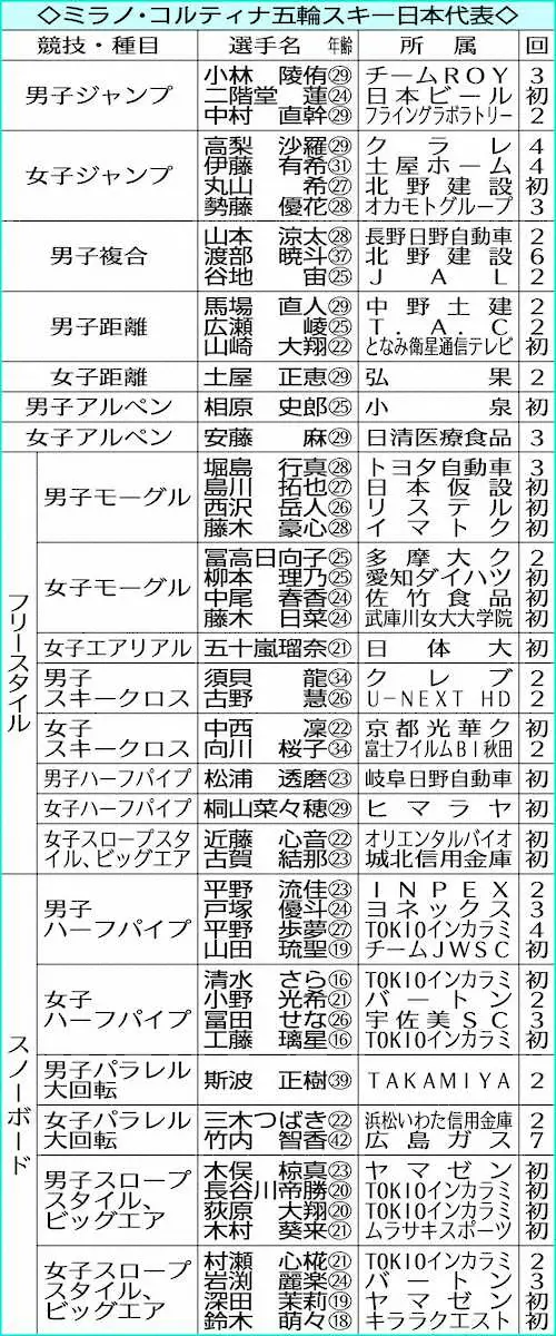 ミラノ・コルティナ五輪 日本代表52人発表 スノボ&ジャンプでメダル量産態勢