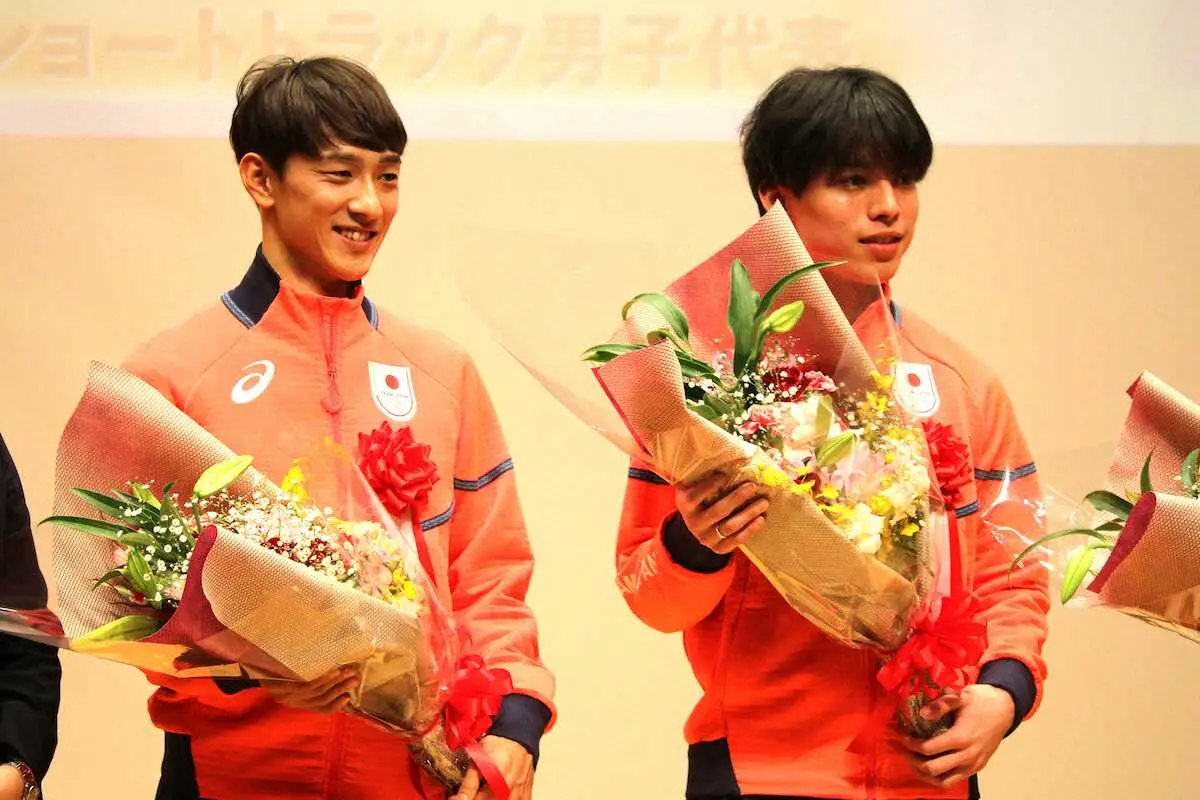 ミラノ・コルティナ五輪スピードスケート・ショートトラック男子代表の渡辺啓太(32=阪南大職)と宮田将吾(22=日本通運)が22日、母校・阪南大で行われた壮行会に出席した。