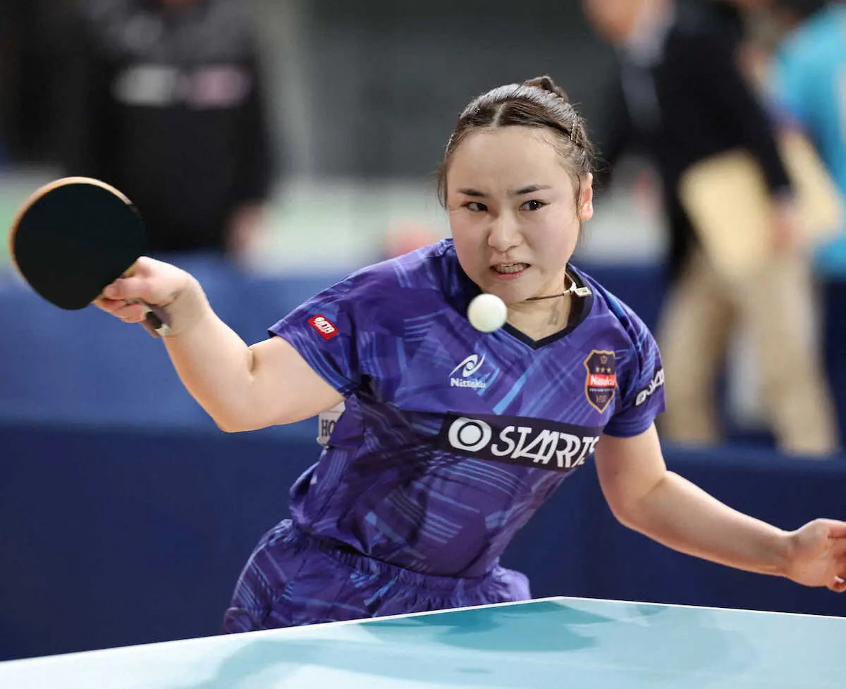 同年代の平野美宇(木下グループ)は佐藤瞳(日本ペイントグループ)に0―4のストレート負けを喫した。早田ひな(日本生命)は赤江夏星(日本生命)を4―2で下し、史上4人目の4連覇へと前進した。