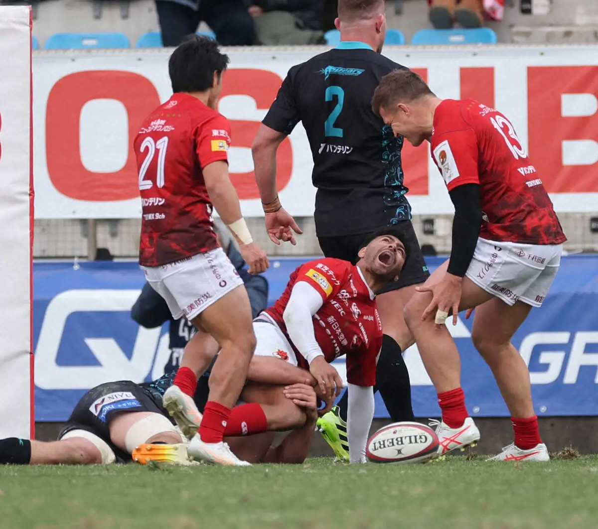 BL東京が王者の執念で白星をつかみ取った。5―3で迎えた前半ロスタイムには、ゴール前約30メートルでペナルティーを獲得するとショットではなくラインアウトを選択。狙い通りモールでトライを決め、SOモウンガのコンバージョンも決まって7点を追加した。4点差の勝利のため、結果としてこの判断が勝敗を分けたことに。ゲーム主将を務めたFB松永は「相手にシンビンが1枚出ている間にトライを取りたかったし、取れる自信もあった」と振り返った。
