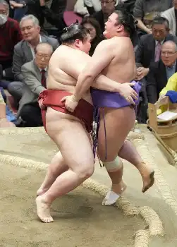 義ノ富士は欧勝馬を押し出して勝ち越し、殊勲賞を獲得