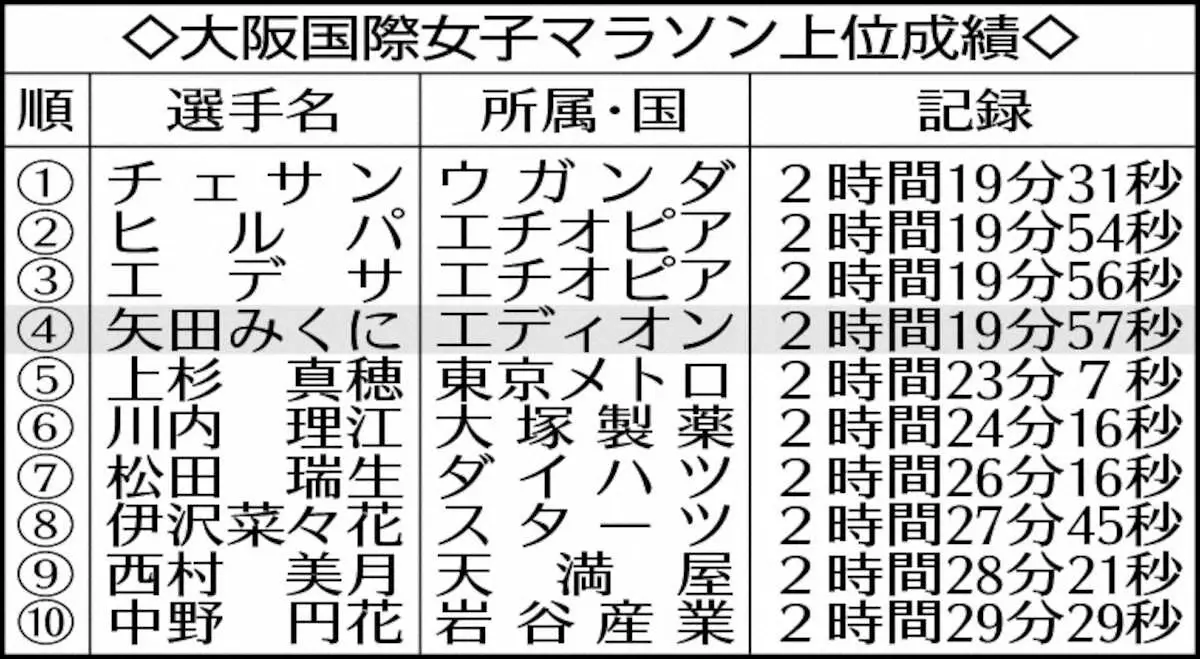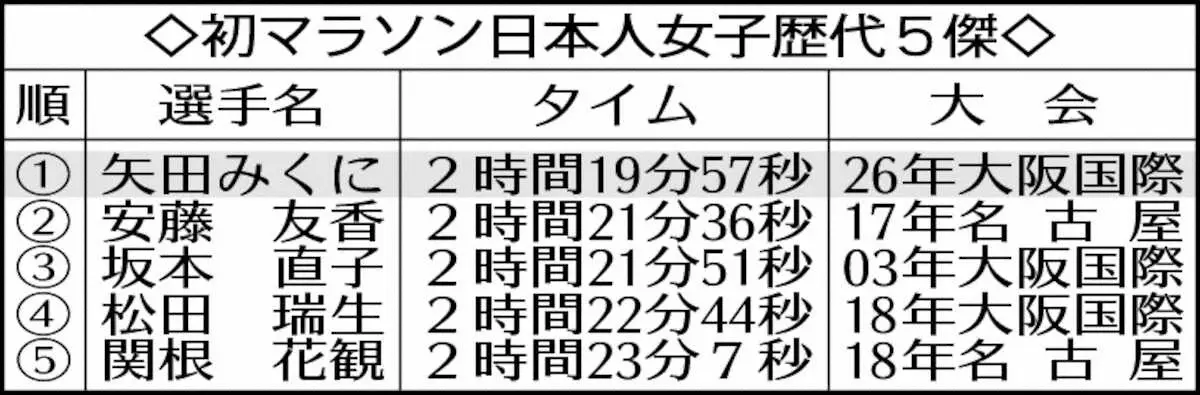 表・女子マラソン日本歴代10傑 Photo by スポニチ 【大阪国際女子マラソン】矢田みくに「凄く楽しかった」初マラソン日本最… ギャラリーで見る この記事のフォト 2026年01月26日の画像一覧 もっと見る 2026年01月26日の画像をもっと見る