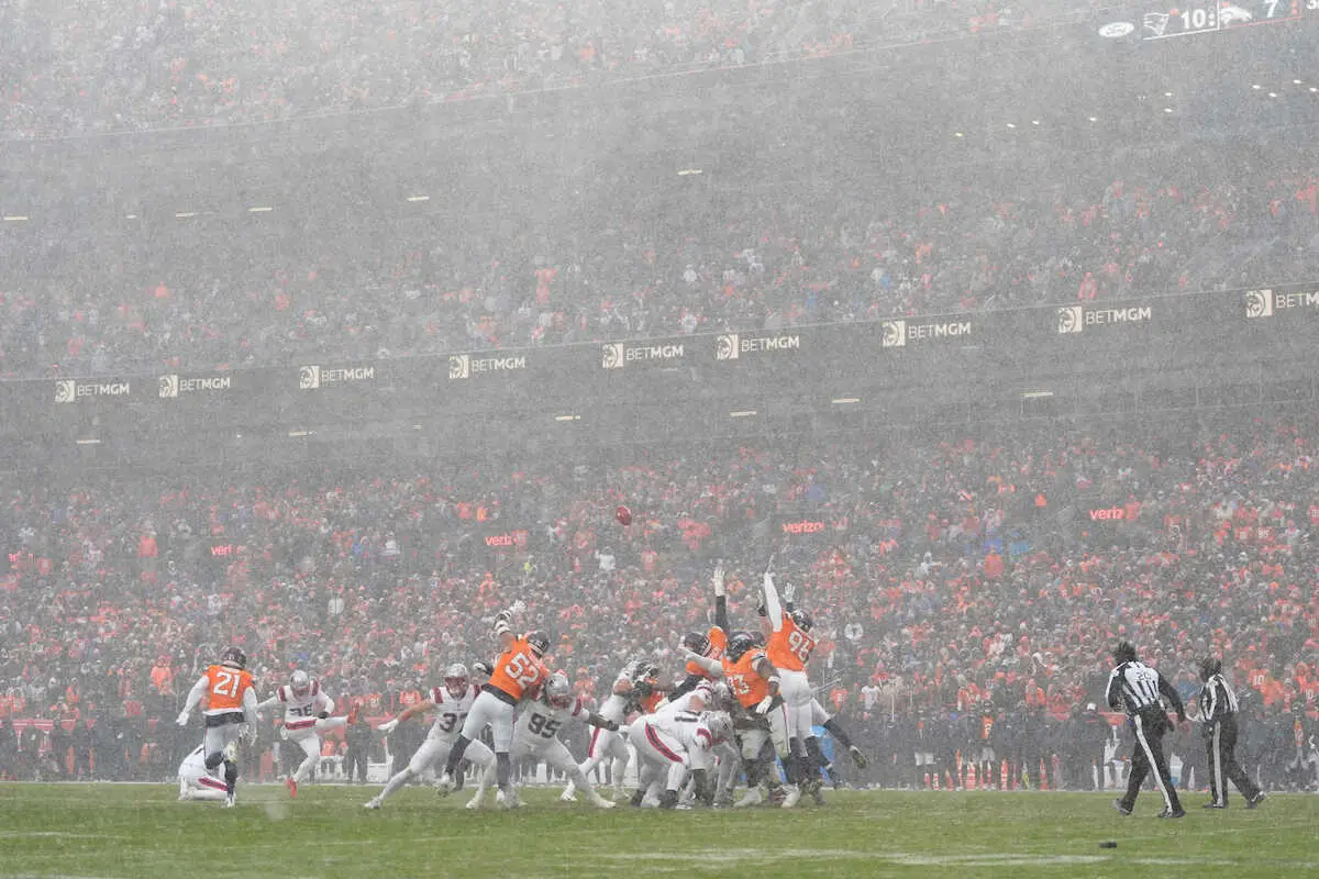 雪が激しく降り出した後半はペイトリオッツが粘り強くラン攻撃を進め、第3Q残り5分29秒にKボレガレスの64ヤードFGで10―7と勝ち越した。しかし、吹雪でフィールド上のラインも見えなくなり、同Q終了間際の51ヤードFGは失敗。ブロンコスも第4Q残り4分46秒でKルッツの45ヤードFGをブロックされて同点機を逃した。