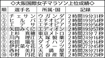 愛知・名古屋アジア大会(9月19日開幕)日本代表選考会を兼ねて行われ、昨年の世界選手権1万メートル代表の矢田みくに(26=エディオン)が初マラソン日本最高の2時間19分57秒をマーク。日本歴代6位の好記録で日本人最上位の4位に入った。矢田を含む4人が来年秋に開催予定の28年ロサンゼルス五輪日本代表選考レース「MGC(マラソングランドチャンピオンシップ)」の出場権を獲得。28年のロス五輪へニューヒロイン候補が誕生した。