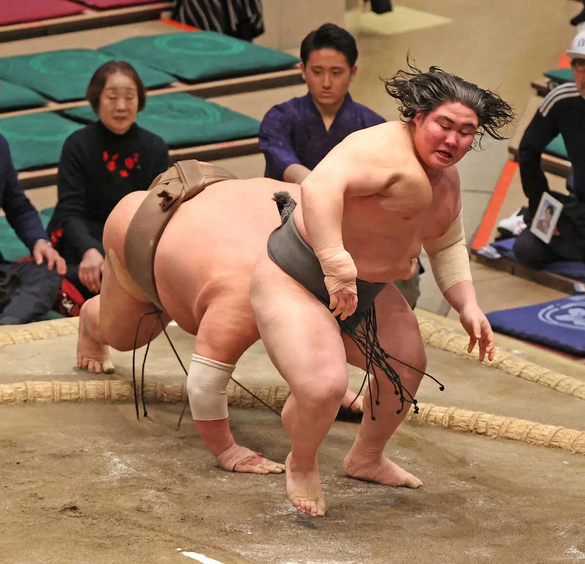 新十両昇進を懸けた“入れ替え戦”の意味合いが強い大一番。相手の突っ張りに後退したが土俵際で右下手を引いて残すと、右へ回り込んで体を入れ替えて前に出たところで相手の右足が俵を踏み越した。福崎にとって初めての十両の土俵。「立ち合いから相手の流れになってしまって十両の壁も感じたけど、回り込もうという意識ではなく押し返そうという意識で結果的に残れた」。今場所見せている動きの良さを大一番でも発揮した。