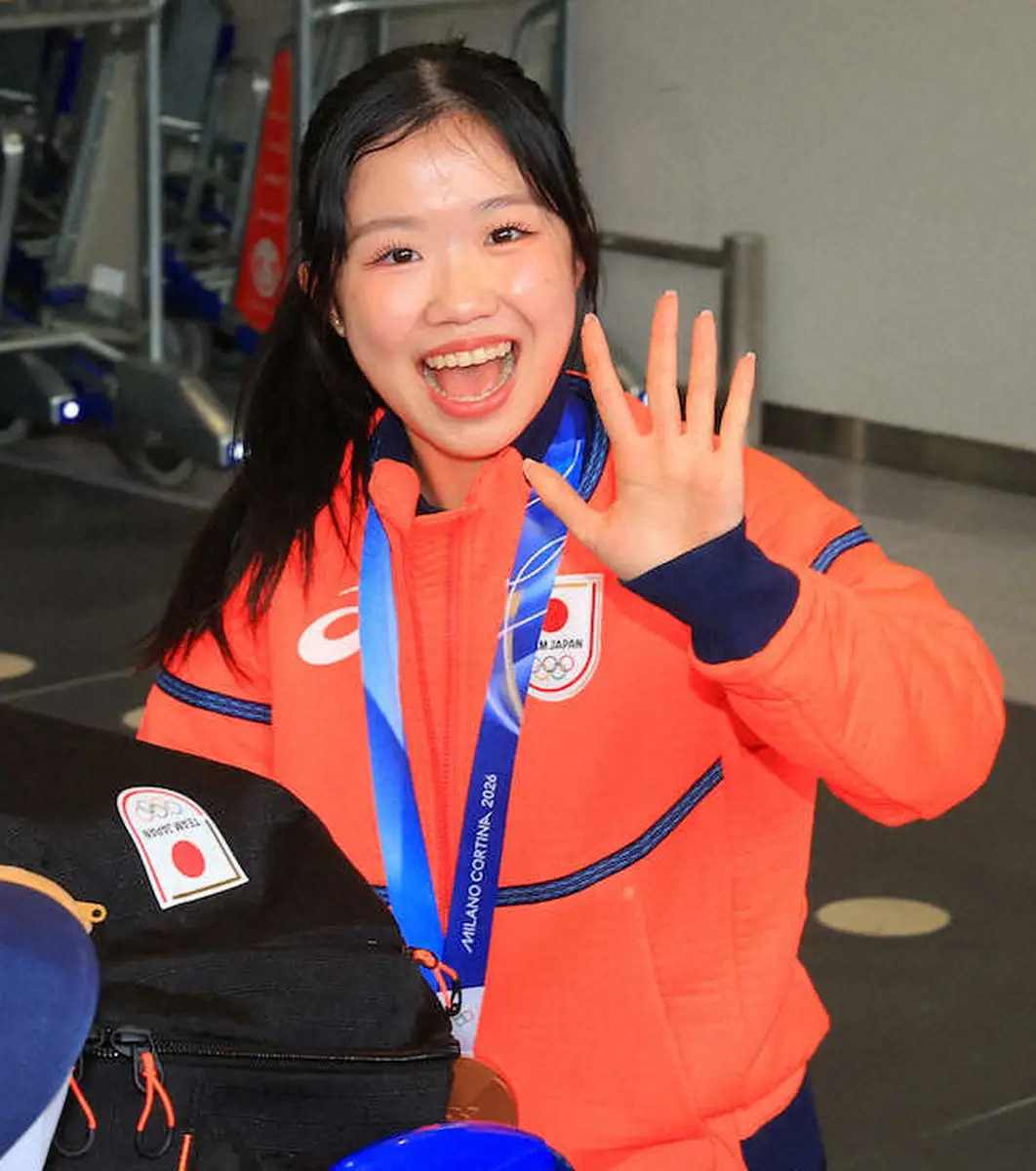 フィギュアスケート女子で銅メダルに輝いた中井亜美(17=TOKIOインカラミ)は帰国した成田空港でも“あざと可愛さ”全開だった。約400人のファンから祝福の大歓声を浴びると、手を振りながら笑顔を振りまいた。国内では19日のフリーの演技直後に見せた右手人さし指を口元に当てて小首をかしげるポーズが話題に。報道陣からその反響ぶりを問われると「ちょっと恥ずかしいです」。照れくさそうに笑った。