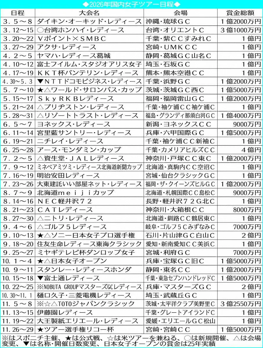 ――今年のツアーの試合数は1増の37試合。NTTドコモビジネス・レディースと富士通レディースは4日間になる。