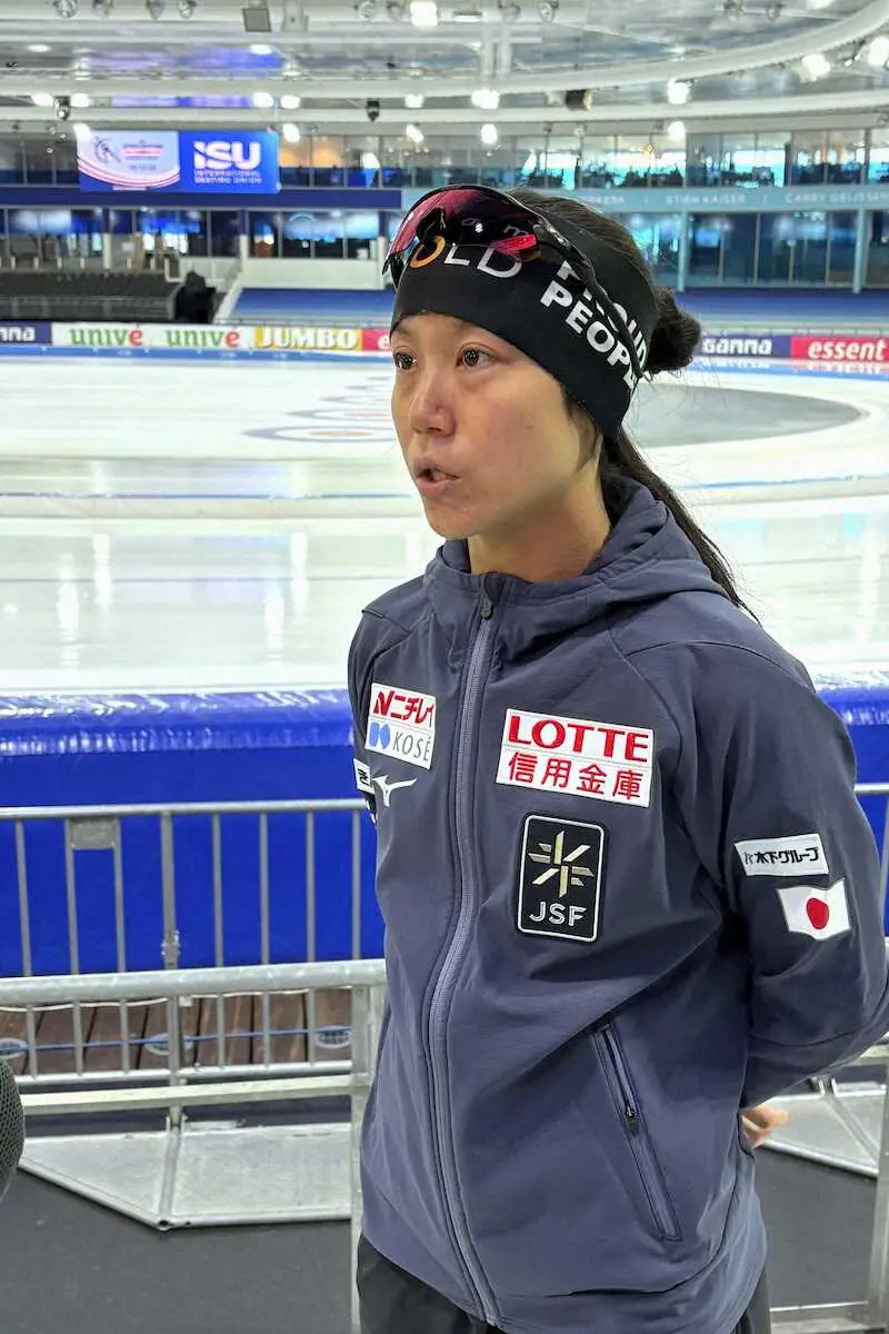 スピードスケート世界選手権に向けての練習後、取材に応じる高木美帆