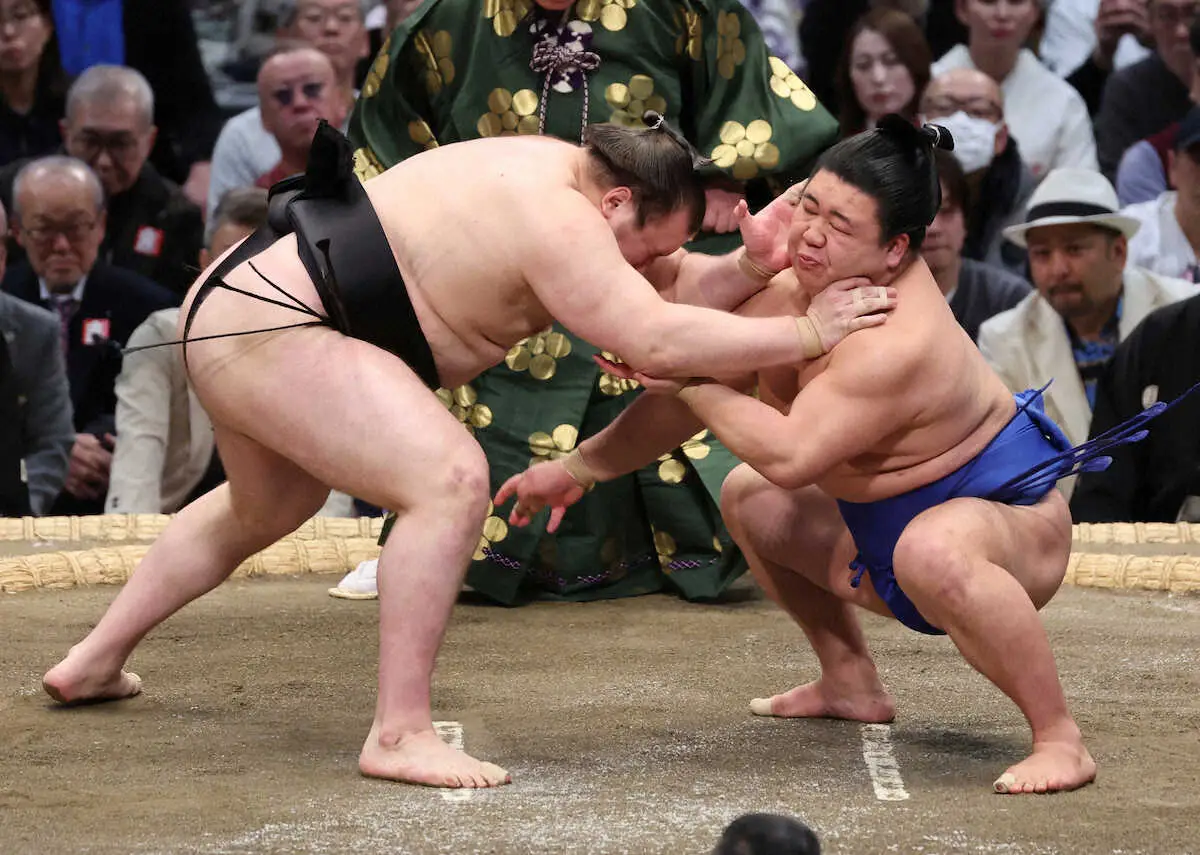藤ノ川が安青錦戦で奇襲を仕掛けた。立ち合いで踏み込まず、立ち上がってから沈み、差しにいくフェイント。業師で知られる舞の海の映像を見て臨んだそうで「作戦失敗しましたね。入り切れなかった。相手の圧力に辛抱をし切れなくなった」。場所前に稽古を重ね「実力が違う」と実感して、考えた奇策は不発。両横綱に続く大関戦の勝利はならなかった。