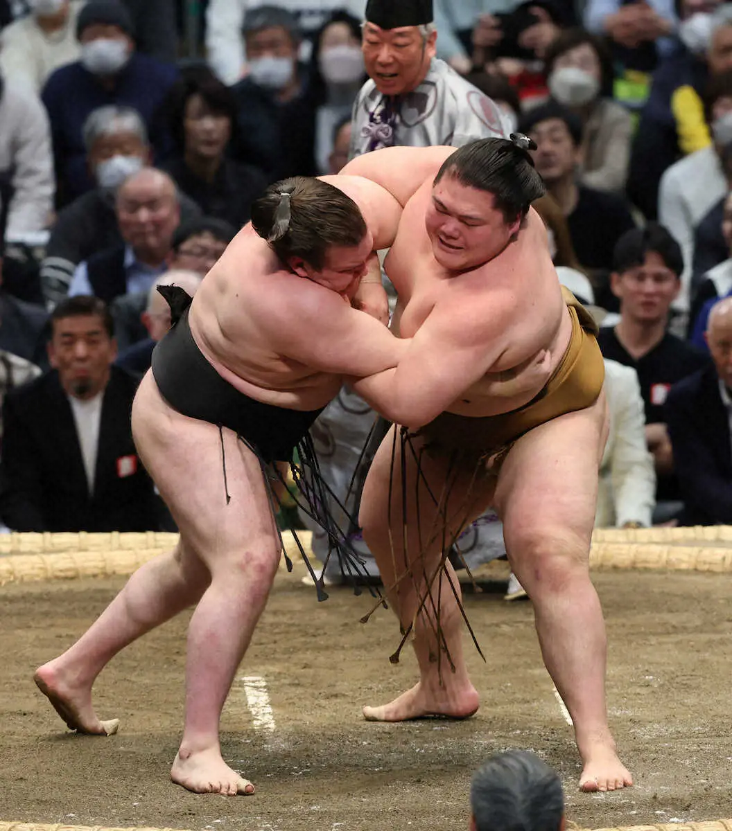 大関経験者で初日から5連勝だった関脇・高安(36=田子ノ浦部屋)は東前頭筆頭の若隆景(31=荒汐部屋)に敗れて土がついた。高安は22年の春場所の優勝決定戦で敗れた因縁の相手に右上手を許す苦しい展開となり、最後は上手出し投げで転がされた。