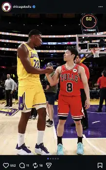 日本人対決実現後…レイカーズ八村塁&ブルズ河村勇輝が試合後にサイン入りユニホーム交換 現地記者報じる