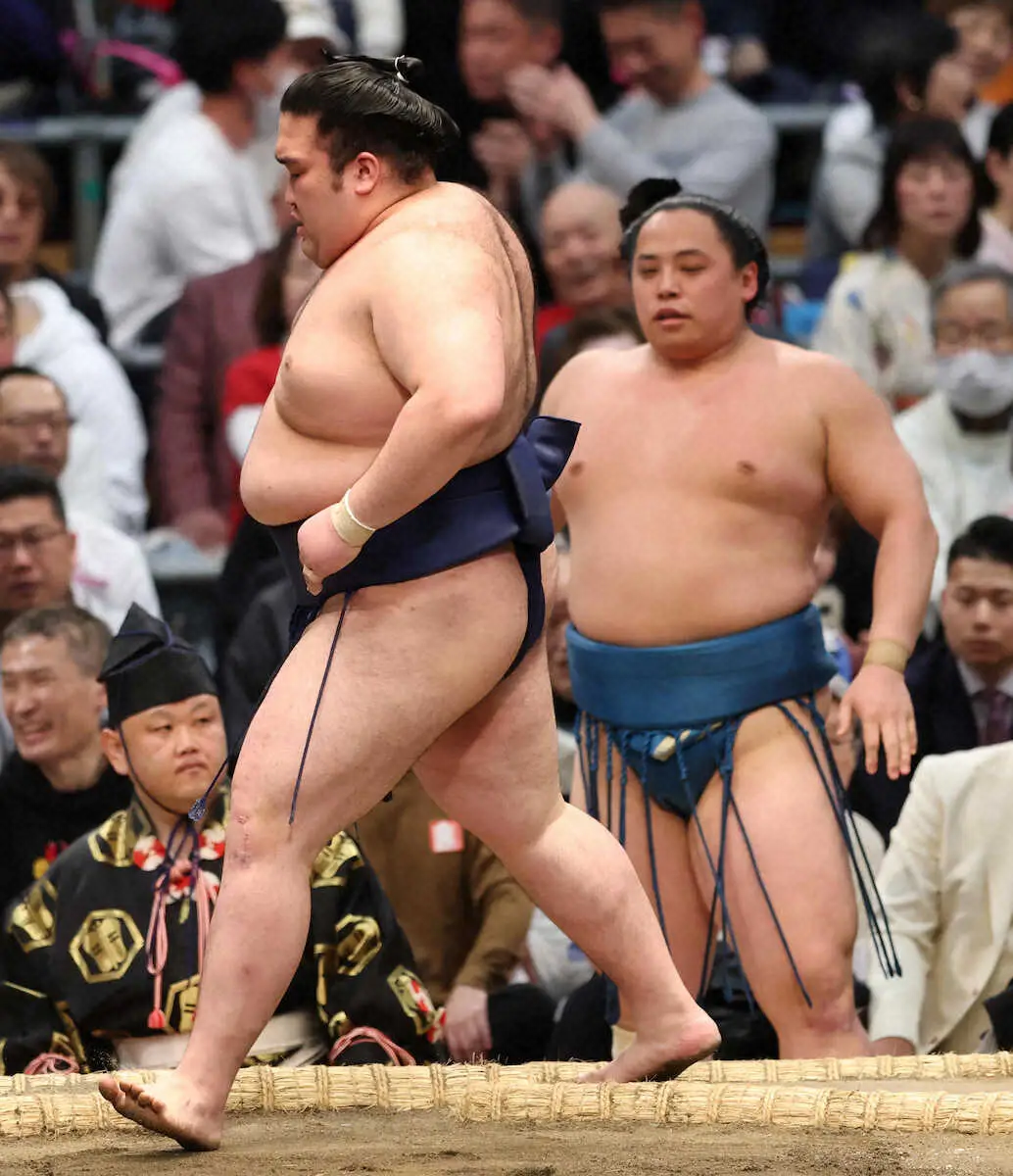 入幕後、初めて9日目で勝ち越しを決めた。埼玉栄高の後輩・琴栄峰に鋭い出足から、ぶちかました。止まることなく力強く押し出し「前に攻めて勝てた。組んでしまったら駄目。しっかり踏み込めている。足を出していけた」と手応えを示した。