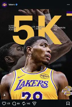 八村塁 通算5000得点にファン祝福!レイカーズもトリビュート画像投稿「幸せです」「おめでとう!」