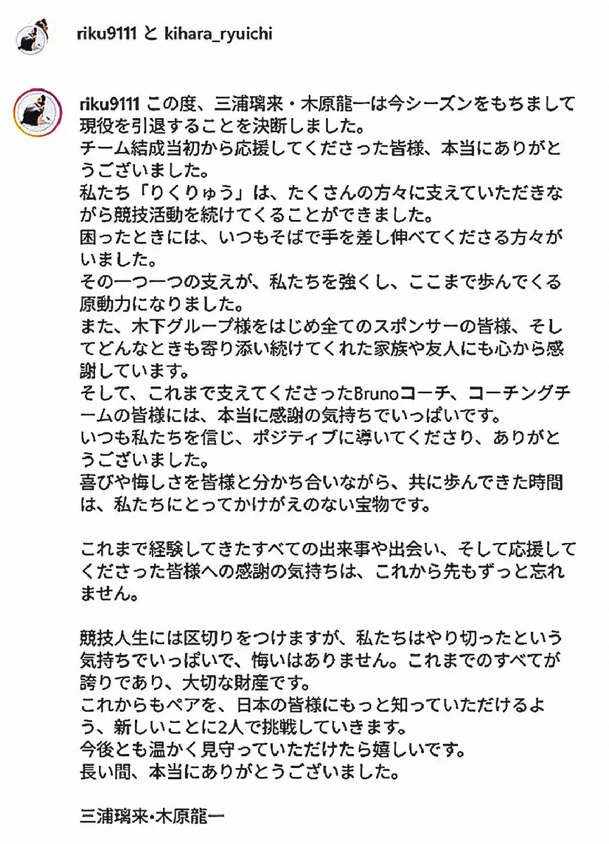 春の園遊会に招かれた三浦と木原(AP) Photo by AP りくりゅう電撃引退「やり切った」…園遊会前に発表「陛下に自分たちの考え… ギャラリーで見る この記事のフォト 2026年04月18日の画像一覧 もっと見る 2026年04月18日の画像をもっと見る