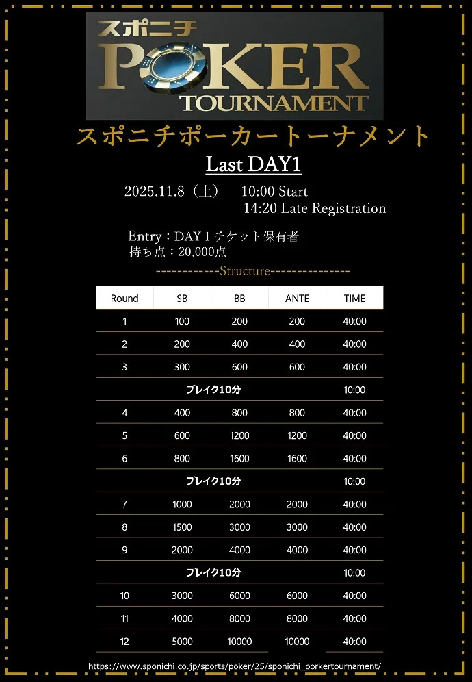 スポニチポーカートーナメント「DAY1」チケット保有者
