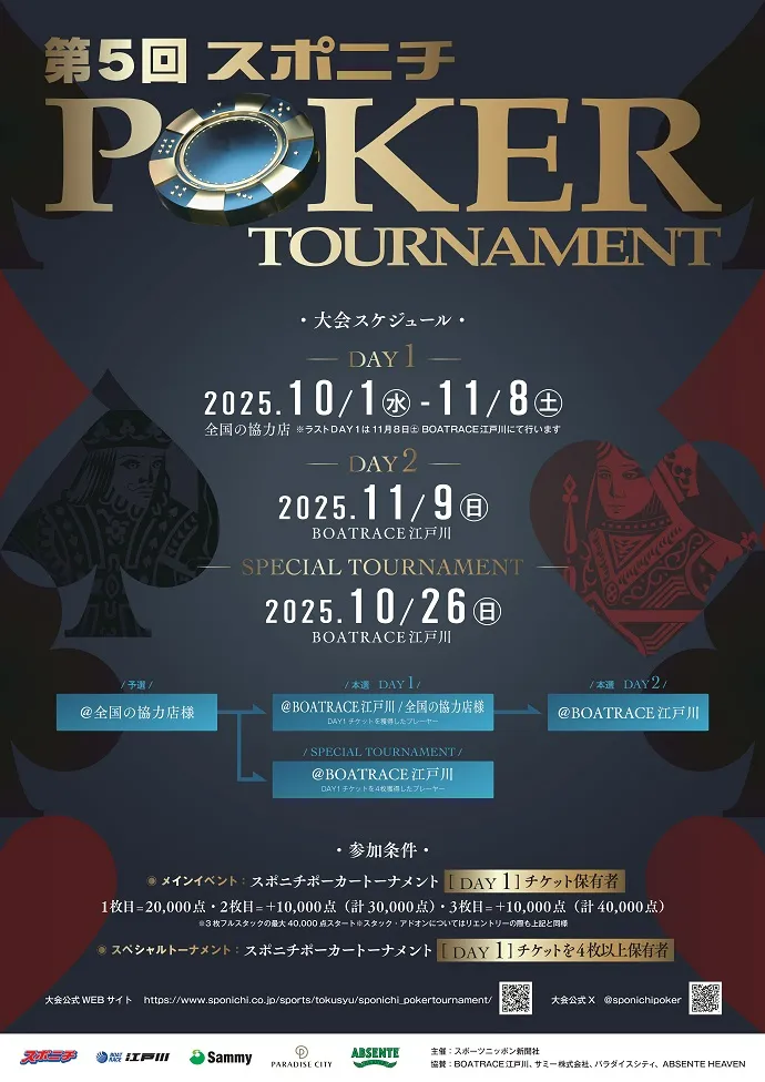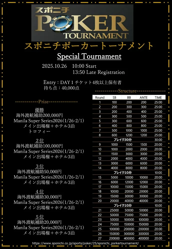 スポニチポーカートーナメント「DAY1」チケットを4枚以上保有者