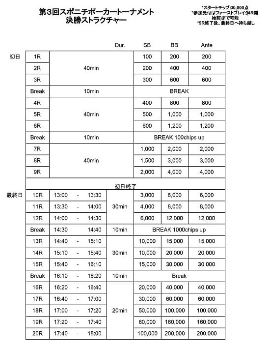 ・決勝初日の開始スタックは全参加者一律