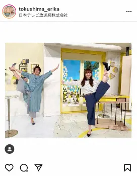 日テレ徳島えりかアナ 田中理恵さんと見事なY字バランス披露「素晴らしい」「ふたりとも身体柔らか」